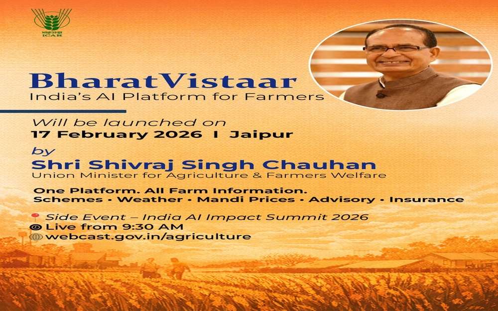 Jaipur, 16th Feb: Union Minister for Agriculture and Farmers’ Welfare and Rural Development, Shivraj Singh Chouhan, will launch the AI-powered digital platform ‘Bharat-VISTAAR’ in Jaipur on February 17, aimed at providing farmers with integrated information and advisory services.