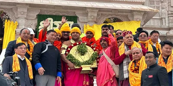 Additionally, Khandu presented traditional offerings such as a Kalash filled with water from Parsuram Kund, a Buddhist prayer bell, and a Sankh, symbolizing the convergence of diverse traditions in reverence to Lord Ram.