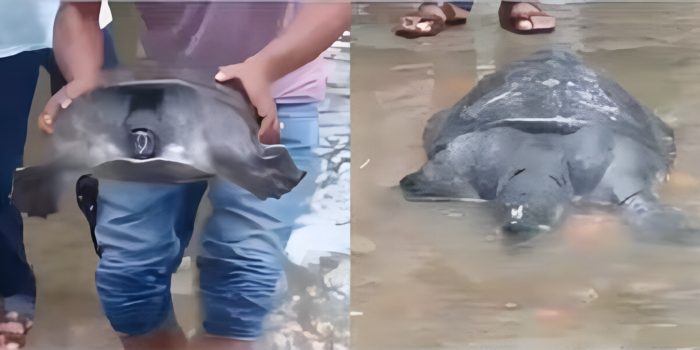 The widely shared video shows men carefully lifting the turtle from a submerged lane, followed by a clip of the creature crawling along the riverbank and disappearing into the waters of the Brahmaputra.