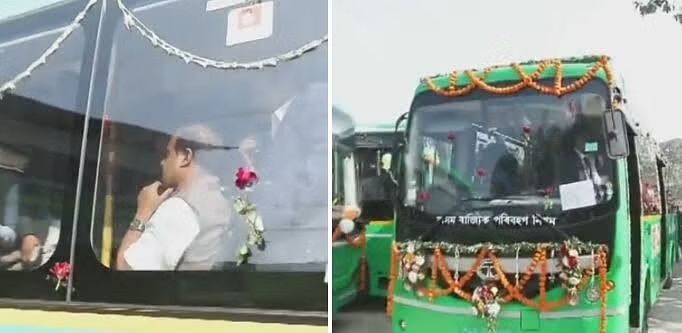 Guwahati, 2nd Jan. Assam Chief Minister Himanta Biswa Sarma flagged off 200 air-conditioned electric buses on Monday. These buses will operate in Guwahati and its surrounding areas.