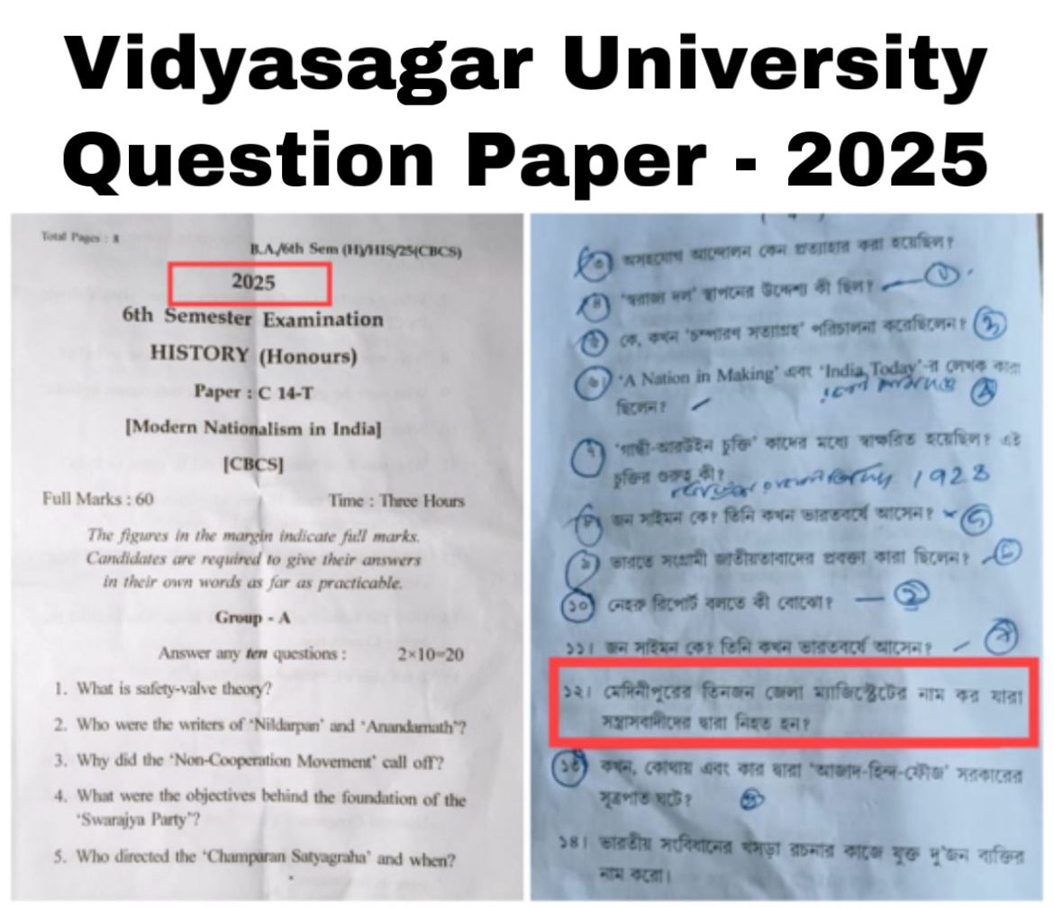 Raising the issue on social media, the BJP MLA alleged, “The Administrative Authorities of Vidyasagar University have once again insulted our revered freedom fighters by labeling the brave revolutionaries of Medinipur as ‘militants’ and ‘terrorists’ in the 2025 History Honours Sixth Semester question paper.”