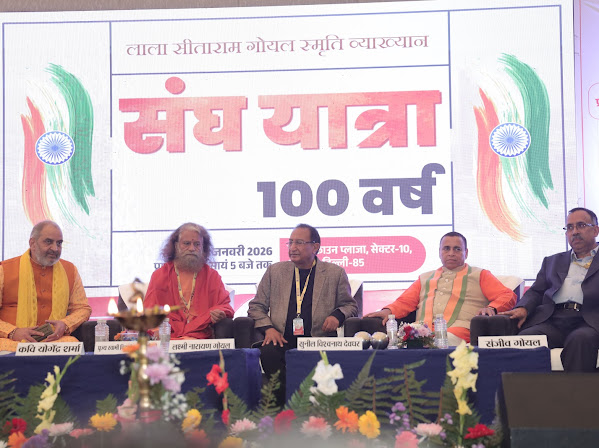 New Delhi, 19th Jan: A grand and dignified Lala Sitaram Goyal Memorial Seminar–75.0, jointly organised by Chetna and S.R. Charitable Trust, was successfully held on Monday at a hotel in Rohini. The seminar was dedicated to the historic 100-year journey of the Rashtriya Swayamsevak Sangh (RSS) and focused on ideological consciousness and national awakening.