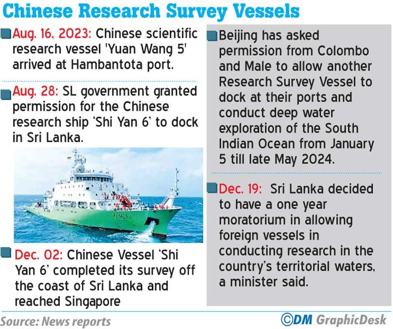 The vessel would not be conducting any research while in the Maldivian waters,” a statement from the Maldivian Foreign Ministry said.