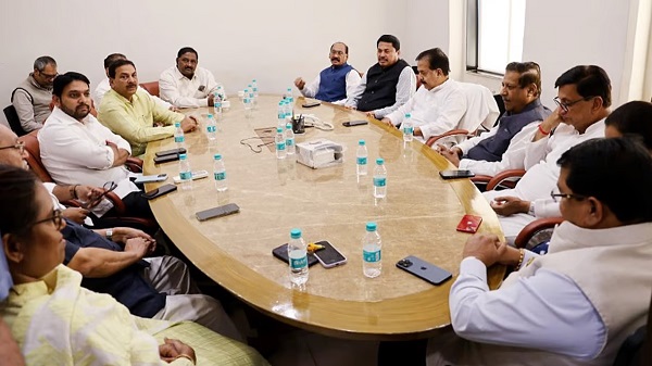 Thursday’s meeting, convened prior to filing the nomination papers of Chandrakant Handore for the Rajya Sabha elections, saw the presence of Maha Vikas Aghadi leaders Ajay Choudhary from Shiv Sena UBT and Jitendra Awhad from the Sharad Pawar-led NCP.