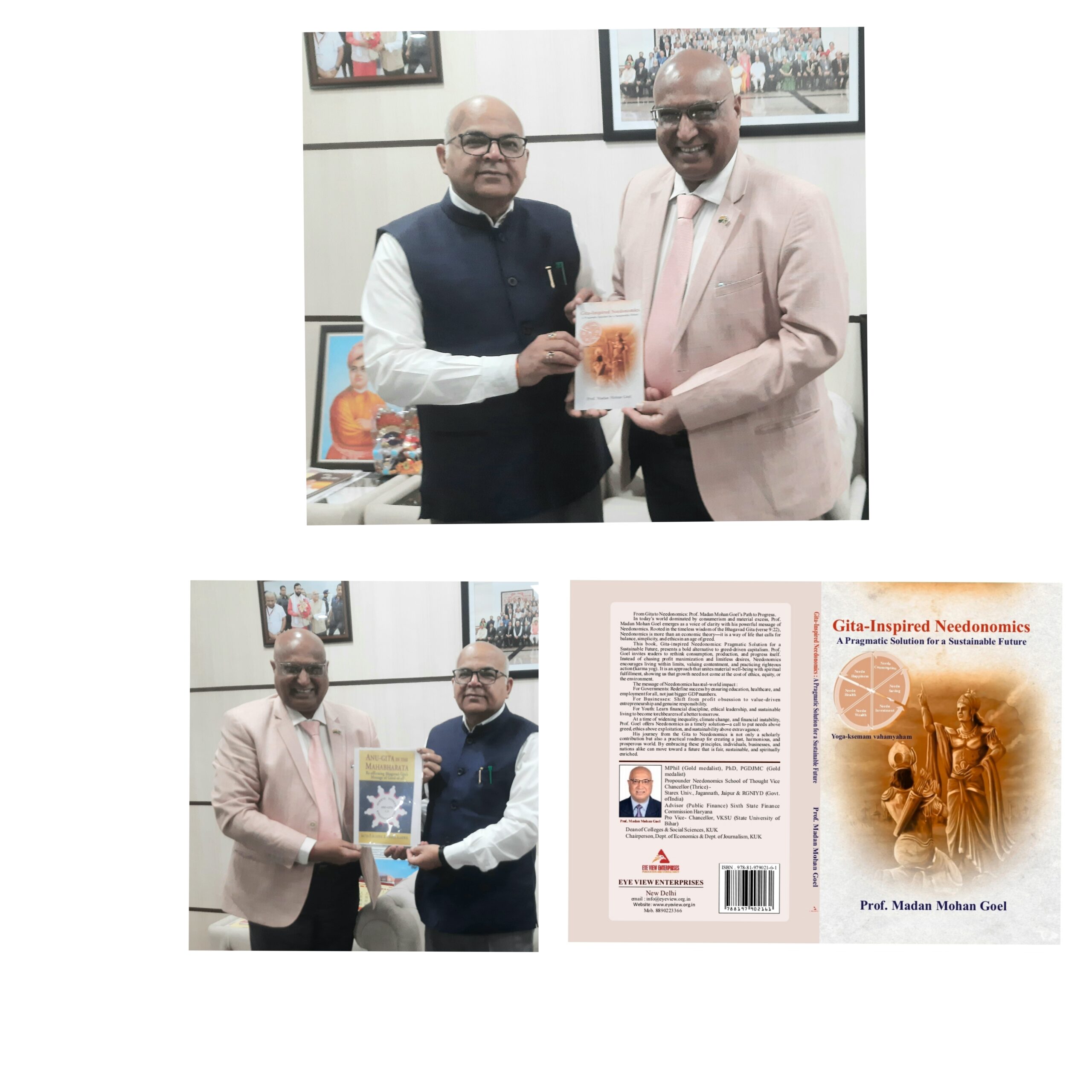 Mahendergarh , 2nd December: Prof. Madan Mohan Goel, Propounder Needonomics School of Thought, former Vice-Chancellor (thrice), and Superannuated Professor of Kurukshetra University, visited Mahendergarh today and presented a copy of his newly authored book “Gita-Inspired Needonomics: A Pragmatic Solution for a Sustainable Future” to Prof. Tankeshwar Kumar, Vice-Chancellor, Central University of Haryana (CUH). The book was released by Maanya Mukul Kanithar Ji on November 30 ,2025 at Nagpur Book Festival organized by National Book Trust, India (Ministry of Education, Govt. of India).