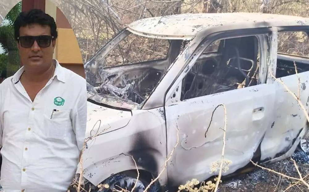 Dharwad, 24th March: A suspected murder case has emerged in Karnataka after a charred body was discovered inside a burnt car in a deserted area near Dharwad.