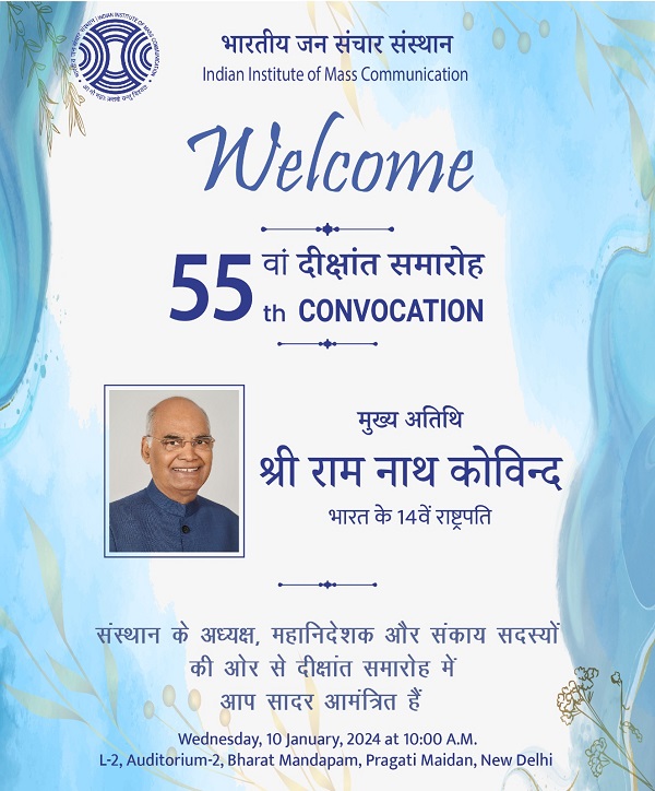 New Delhi, 9th Jan. The 55th Convocation ceremony of the Indian Institute of Mass Communication (IIMC) will be held at Pragati Maidan’s Bharat Mandap on January 10, 2024.