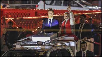 Macron and PM Modi conducted a roadshow in Jaipur, India. The French President went to several landmarks in the pink city, including the Hawa Mahal, the Jantar Mantar, and the Amber Fort. He went to the Hazrat Nizamuddin Aulia Dargah in Delhi.