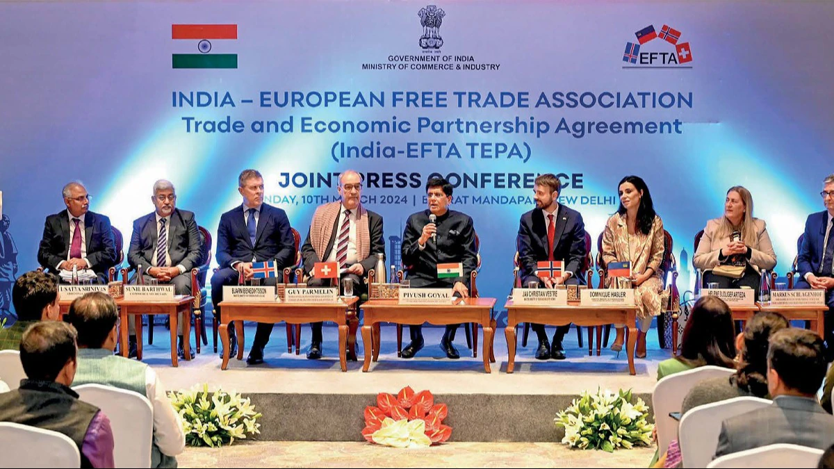 Iceland, Liechtenstein, Norway and Switzerland and India and EFTA had signed the Trade and Economic Partnership Agreement on March 10, 2024, but its implementation was delayed due to pending procedural approvals in the member countries.