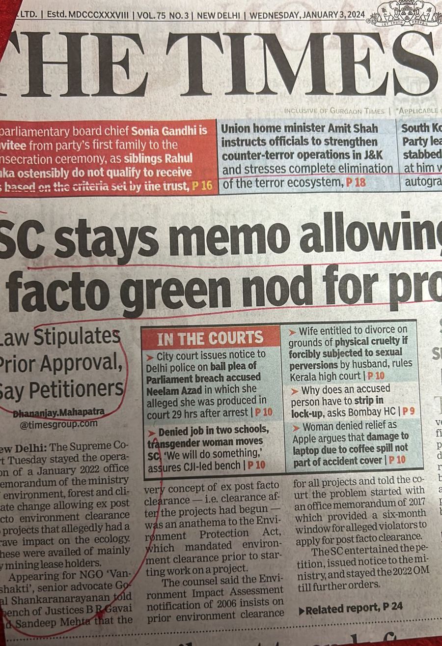 According to experts ,post facto approval for educational institution is not only out of context and bounds of FCA 1980 but it will encourge others also for any type of project whereas it specifically states that cleance will be given in rarest of rare xases and that too for site specific projects. I would say this stay is potent as the judgement of GODAVERMAN CASE OF 1996. Godaverman case is the Gita of Forestry.