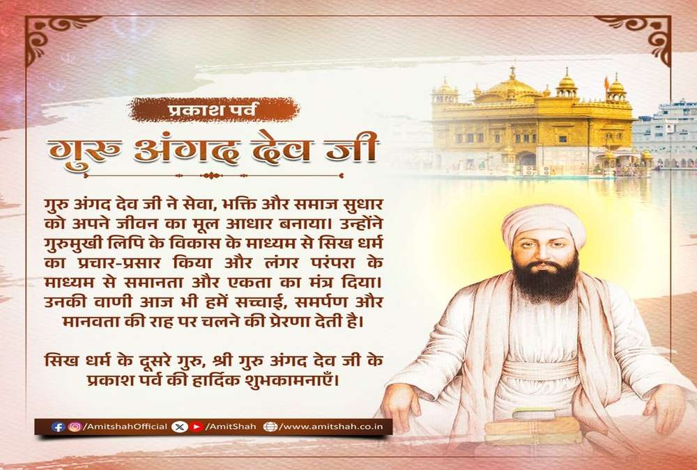 - Amit Shah extends greetings on Guru Angad Dev Ji’s Parkash Purab
