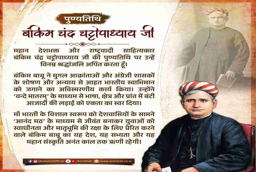 In a message shared on social media, Shah said Bankim Chandra played a pivotal role in restoring India’s self-respect during a time marked by exploitation and injustice under foreign rule.
