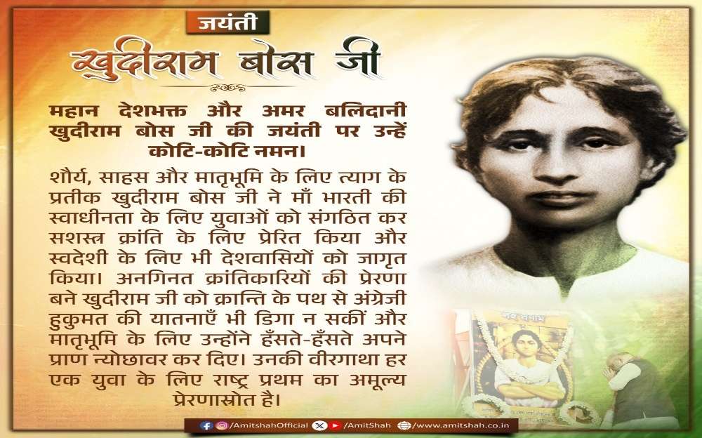 Shah wrote that Khudiram’s heroic story continues to inspire generations, urging today’s youth to always place the nation above all else. He said the revolutionary’s legacy stands as an “invaluable source of inspiration” for every young Indian committed to national service.