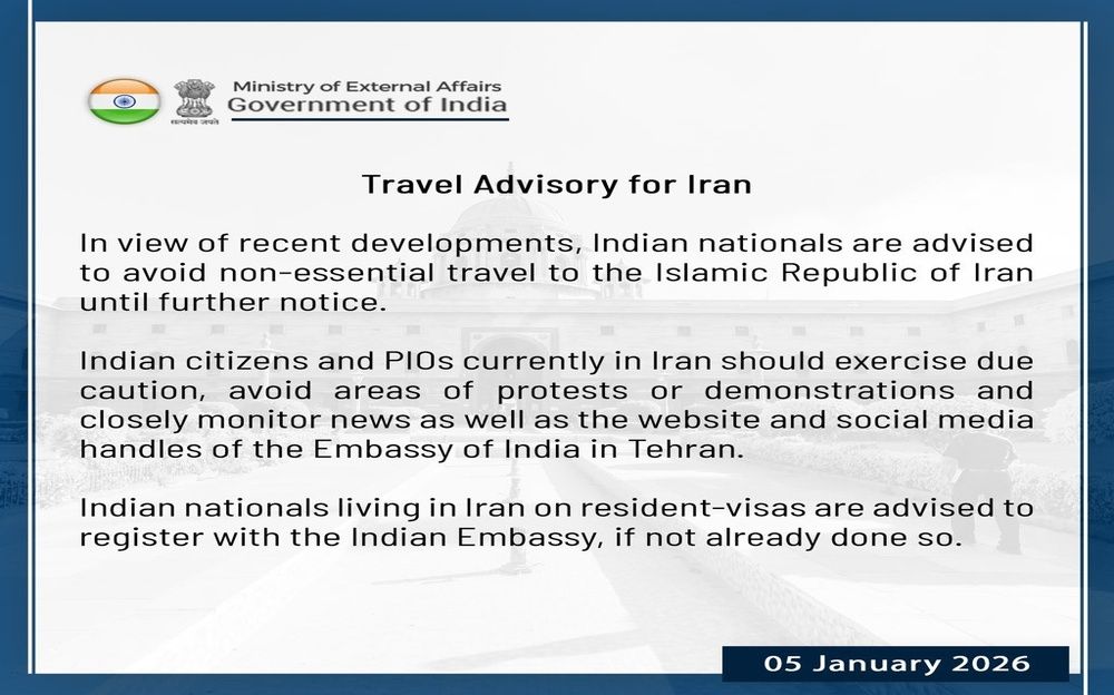 “In view of recent developments, Indian nationals are advised to avoid non-essential travel to the Islamic Republic of Iran until further notice,” the advisory said.