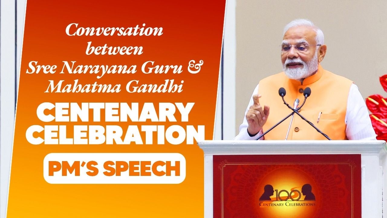 New Delhi, 24th June: Prime Minister Narendra Modi on Tuesday addressed the centenary celebration of the historic conversation between Sree Narayana Guru and Mahatma Gandhi at Vigyan Bhawan, calling their ideals “eternally relevant” for India’s development and social harmony.