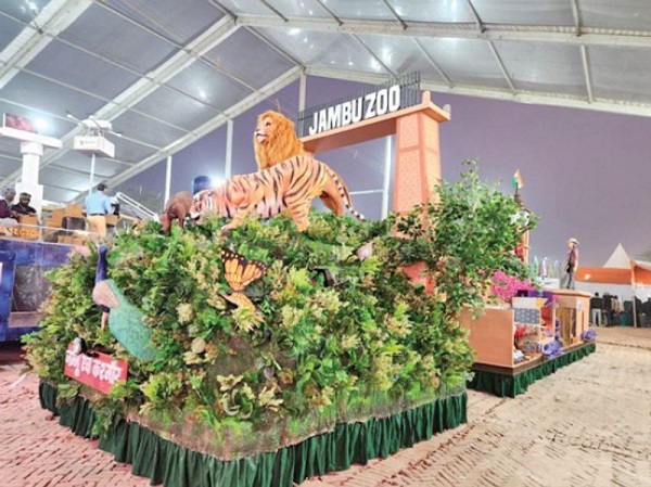 The Jammu and Kashmir tableau depicts the legend of Raja Jambu Lochan, symbolizing the harmonious inception of Jammu city. It also highlights the newly inaugurated Jambu Zoo, which is the first full-fledged zoo in the Union Territory.