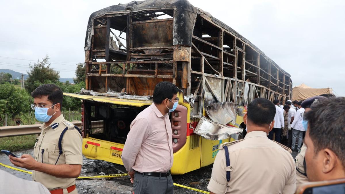 The bus, operated by Kaveri Travels, was carrying 41 passengers when the accident took place around 3 am on the Hyderabad–Bengaluru highway. Officials said the fuel tank of the motorcycle ruptured upon impact, causing a leak that led to the explosion of the bus’s fuel tank.