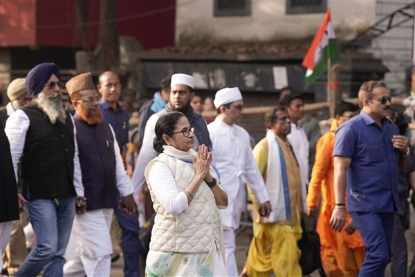 Accompanied by religious leaders from various faiths and party members, Banerjee commenced the Sanghati March from Hazra More in Kolkata.