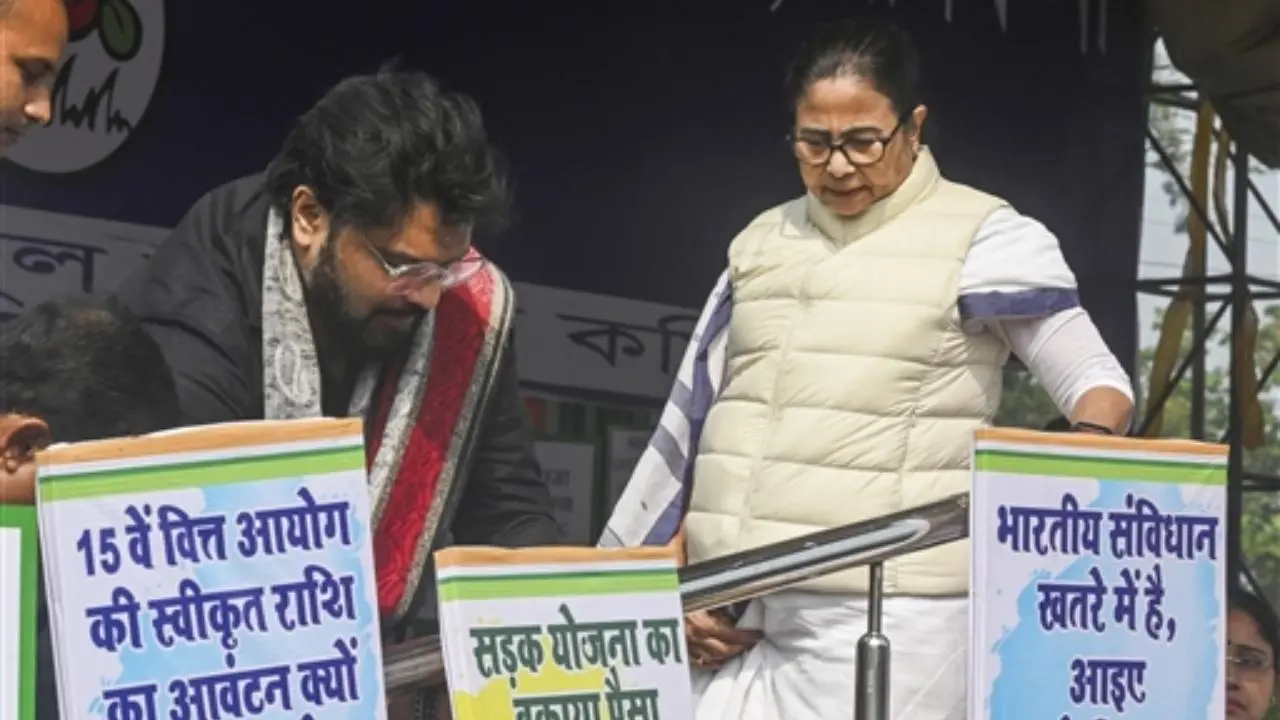 Banerjee’s protest is based on her claim that the BJP-led central government owes the state thousands of crores of rupees for various welfare schemes, including the MGNREGA and the PM Awas Yojana.