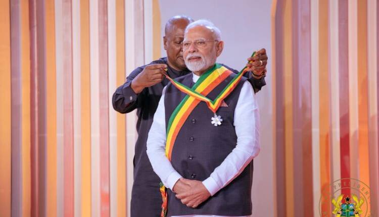 Ministry of External Affairs Spokesperson Randhir Jaiswal said in a post on X “A testament to the deep and long standing India-Ghana ties. President @JDMahama conferred upon PM @narendramodi ‘The Officer of the Order of the Star of Ghana’, the national award of Ghana dedicated the award to the 1.4 billion people of India and the historic and deep rooted India-Ghana relations. He thanked the government and people of Ghana for this exceptional honour,”.