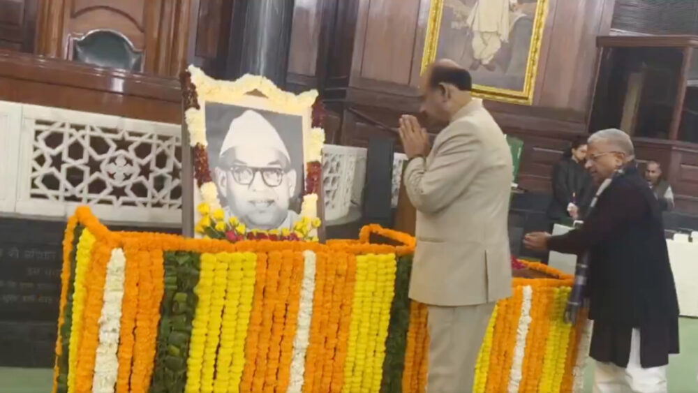 Floral tributes offered in Central Hall of Samvidhan Sadan on birth anniversary