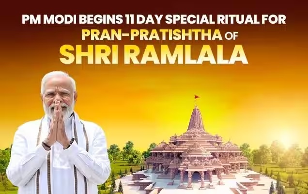 Ayodhya, 12th Jan. Prime Minister Narendra Modi has started a 11 day special ritual in the run up to the Pran Pratishtha of Shri Ramlala at the temple at Ayodhya Dham on 22nd January.