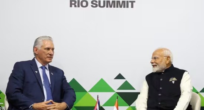 Rio de Janeiro, 7th July: Prime Minister Narendra Modi held a bilateral meeting with Cuban President Miguel Díaz-Canel Bermudez on the sidelines of the 17th BRICS Summit in Rio de Janeiro, reaffirming India-Cuba cooperation across key sectors including digital infrastructure, healthcare, and climate change.