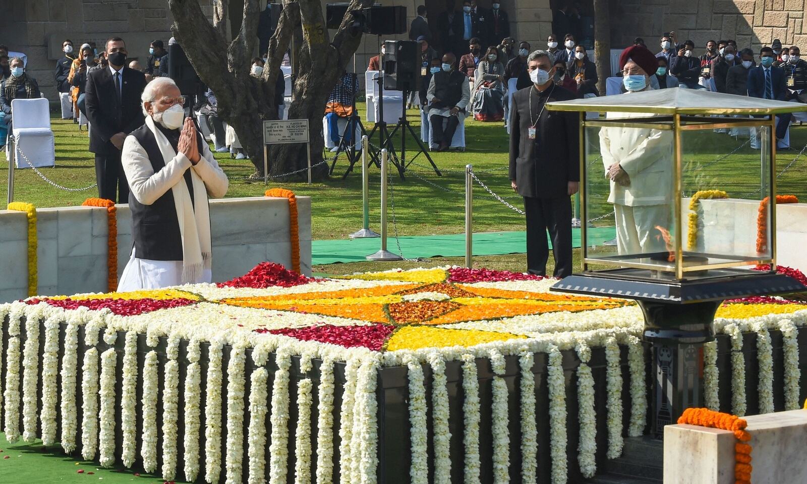 New Delhi, 30th Jan. Prime Minister Narendra Modi on Tuesday paid floral tribute to Mahatma Gandhi on his Punya Tithi at Rajghat.
