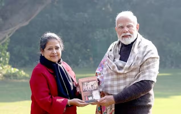 The Prime Minister shared on X, “Always a delight to meet you Sharmistha Ji and remember the memorable interactions with Pranab Babu. His greatness, wisdom and intellectual depth is clearly visible in your book!”