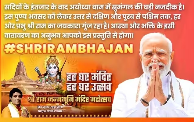 The Prime Minister posted on X, “After centuries of waiting, the auspicious moment is near in Ayodhya Dham. On this auspicious occasion, the praise of Lord Shri Ram is echoing everywhere from North to South and from East to West. You will experience this atmosphere of faith and devotion through this presentation. #ShriRamBhajan”