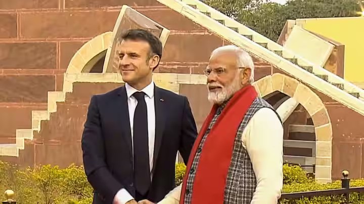 Jaipur, 26th Jan. Prime Minister Narendra Modi, along with President Emmanuel Macron of France, visited Jantar Mantar in Jaipur on Thursday.