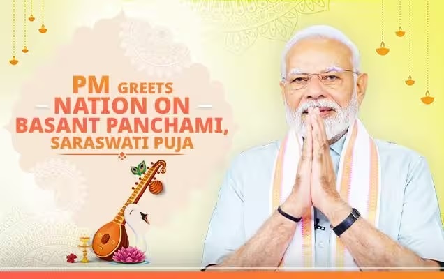 New Delhi, 14th Feb. Prime Minister Narendra Modi on Wednesday conveyed his heartfelt greetings to the people of the nation on the auspicious occasion of Basant Panchami and Saraswati Puja.