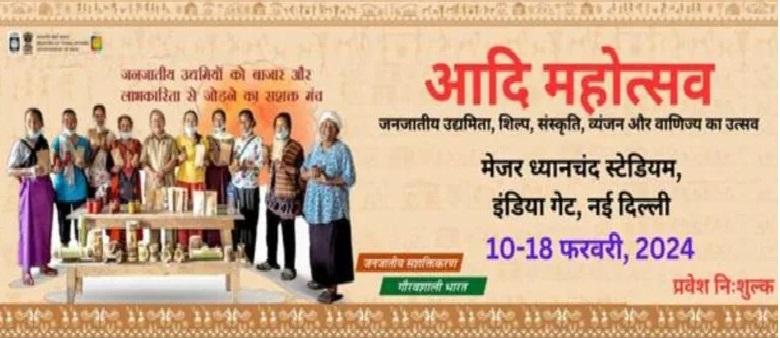 New Delhi, 9th Feb. President Droupadi Murmu will inaugurate the Aadi Mahotsav 2024, an annual National Tribal Festival, at Major Dhyan Chand National Stadium in New Delhi on 10th February.
