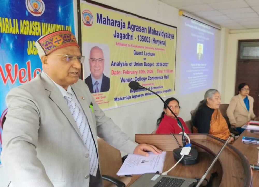 Jagadhri, February 10: Prof. Madan Mohan Goel, Propounder Needonomics School of Thought, former Vice-Chancellor (thrice), and superannuated Professor of Kurukshetra University, delivered an invited lecture on “Analysis of Union Budget 2026–27: Needonomics Reflections on India’s Fiscal Priorities ” at Maharaja Agrasen PG College, Jagadhri.
