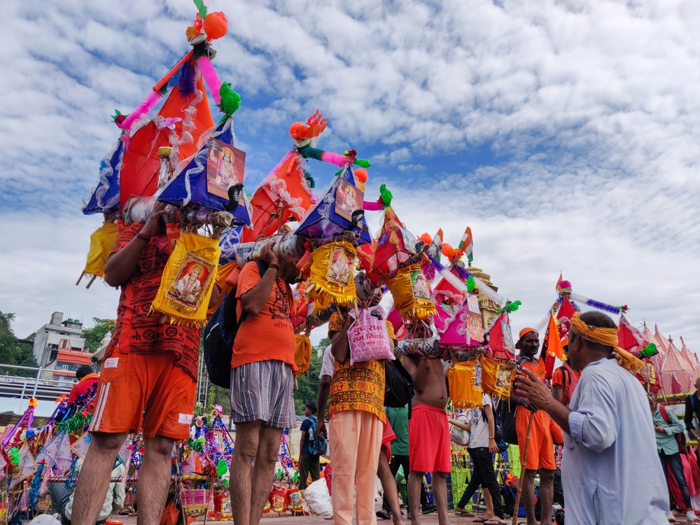 For those with an iron resolve, there is the Khadi Kanwar, where the bamboo structure remains standing, held vertically throughout the route. The devotee’s helper walks beside them, ensuring the Kanwar stays upright — a sight that humbles even the strongest observers.