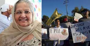 Her arrest has sparked protests. Some 200 people gathered in El Sobrante to demand her release, carrying placards reading “Hands off our grandma” and “She’s no criminal.”