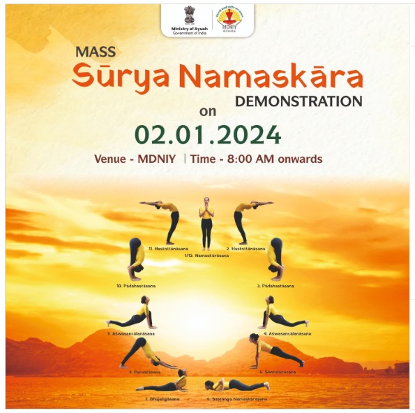 New Delhi, 2nd Jan. Morarji Desai National Institute of Yoga (MDNIY), Ministry of Ayush organised mass Surya Namaskar demonstration on January on Tuesday at MDNIY, which attracted hundreds of Yoga enthusiasts from diverse walks of life.