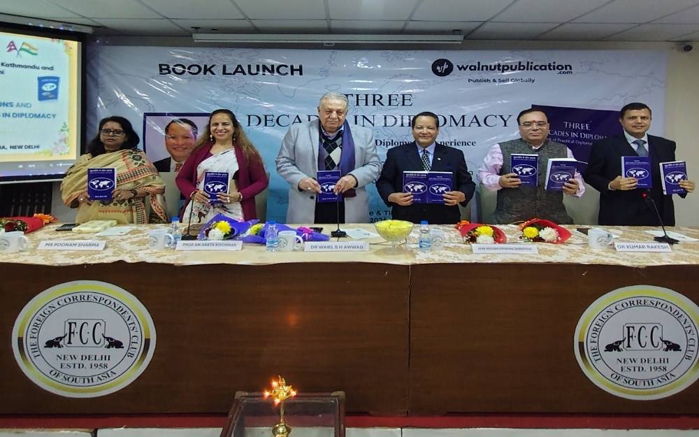 New Delhi, 21st Jan: The Foreign Correspondents Club of South Asia (FCC) hosted the launch of Three Decades in Diplomacy: A Book of Practical Diplomatic Experience, a seminal new memoir by the former Ambassador of Nepal to France, Mr. Mohan Krishna Shrestha. The event, organized in association with the Center for Diplomacy and Development, Kathmandu, and Samagra Vikas Nyas, New Delhi, brought together a distinguished gathering of diplomats, scholars, and media veterans.