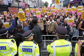 The protests, organized by far-right activist Robinson, began at Russell Square before marching toward Whitehall.