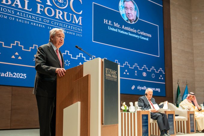 UNITED NATIONS, 15th December: UN Secretary General Antonio Guterres on Sunday addressed the 11th Global Forum of the UN Alliance of Civilizations opened in Riyadh on Sunday with a blunt message for a world driven by distrust: dialogue is not a luxury it’s a survival strategy.