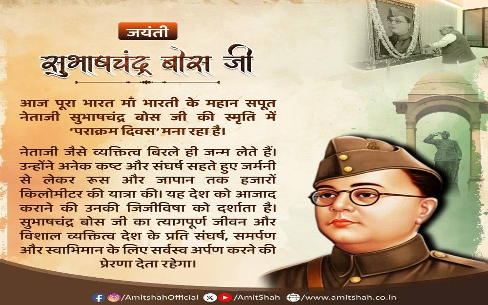 Shah said the entire country is observing Parakram Diwas in memory of Netaji, describing him as a great son of Mother India. He said leaders like Netaji are rarely born and that his extraordinary courage continues to inspire the nation.