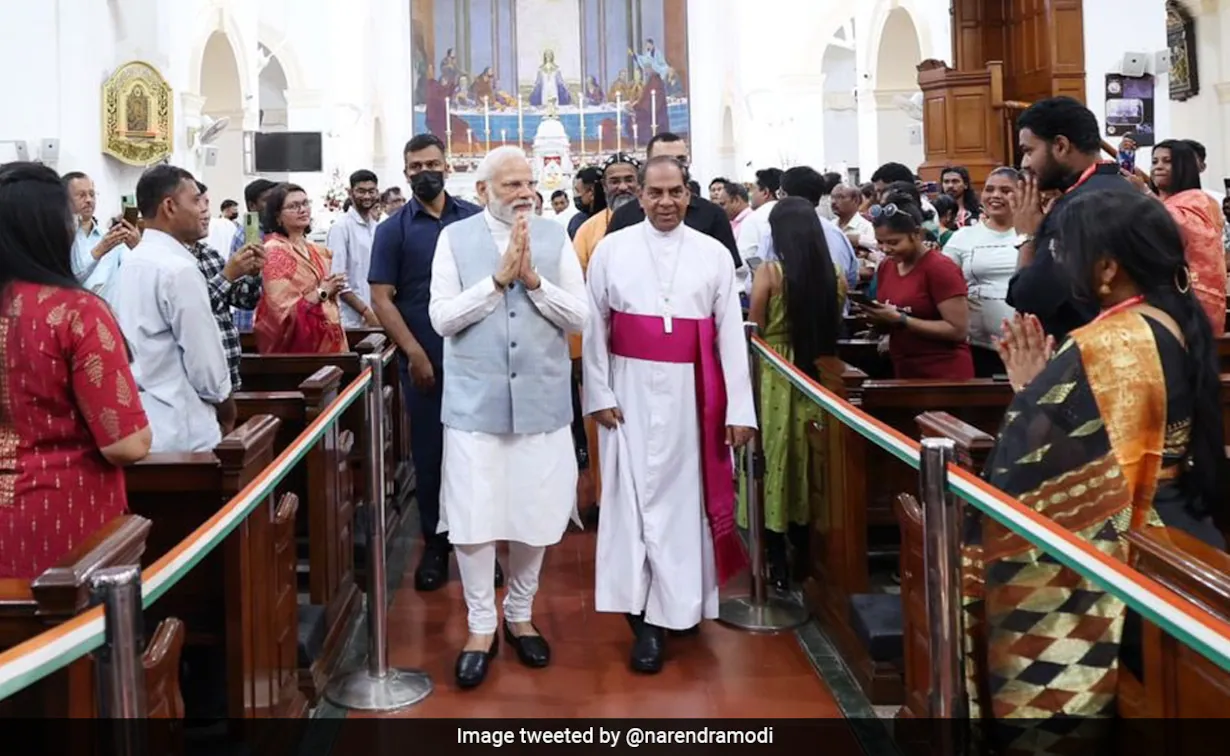 PM Narendra Modi paid an Easter visit to the Sacred Heart Church in Delhi’s Connaught Place on Sunday evening.