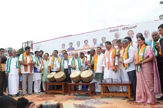 Banners, festoons, and BJP-JD(S) flags adorned the venue, symbolizing the united front of the opposition parties in their campaign against the chief minister.