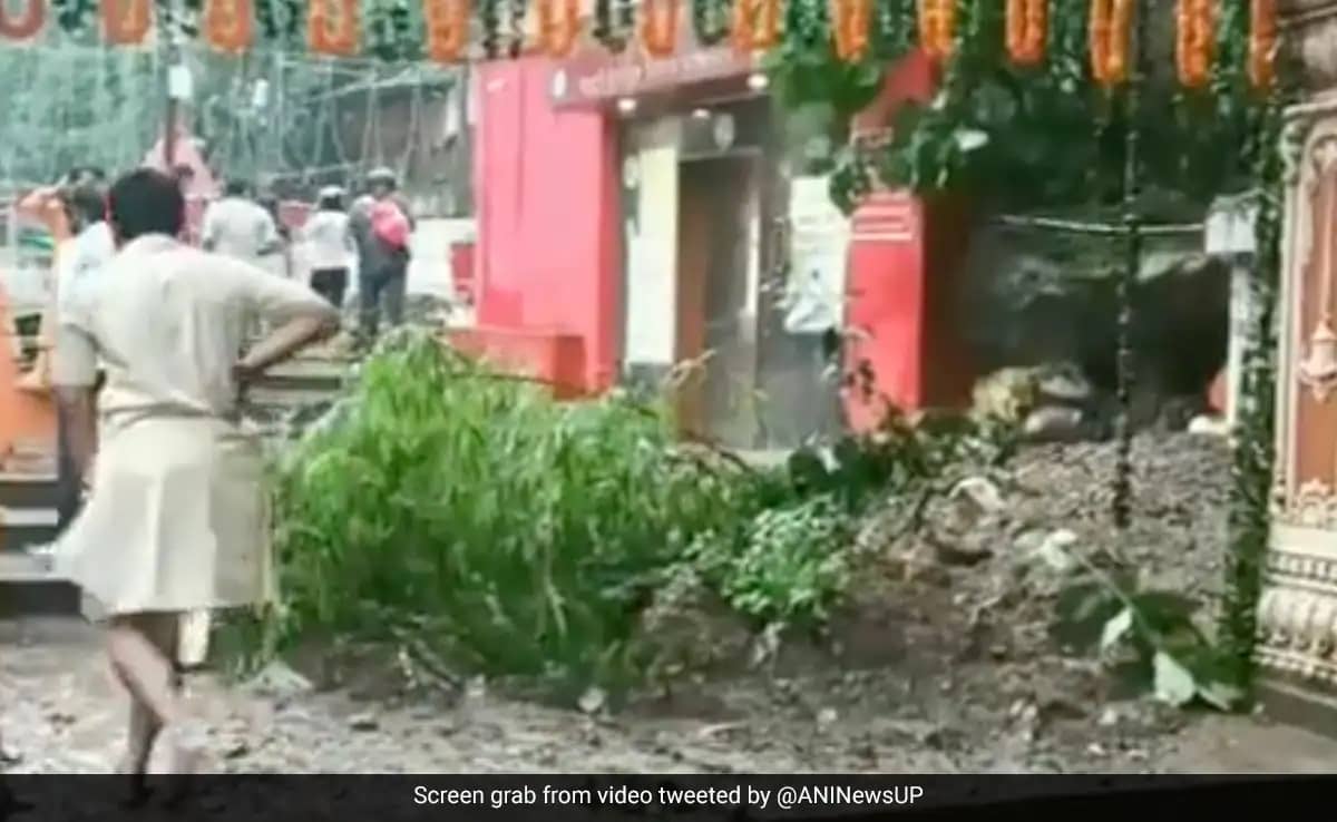 Devotees who came to the temple to offer prayers on the occasion of Sawan Monday had difficulties as the path leading to the temple’s entrance was partially blocked due to tree fall.