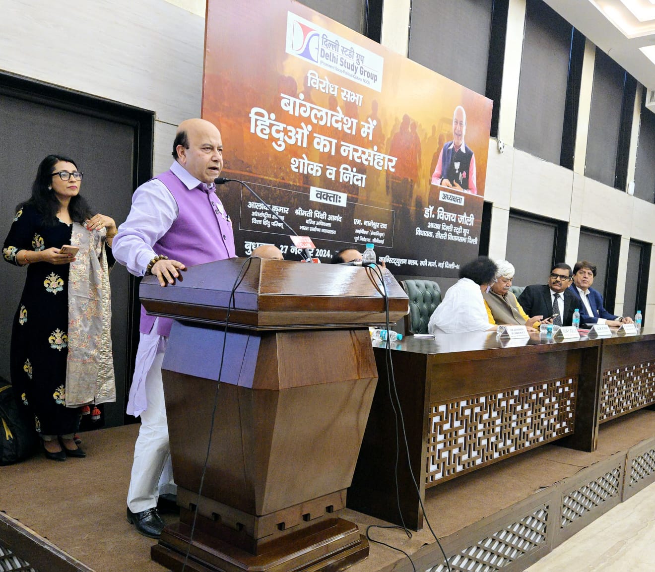 New Delhi, 28th Nov. The Delhi Study Group, a prominent Indian NGO, has strongly condemned the “Hindus Genocide in Bangladesh,” expressing deep anguish over the systematic targeting of Hindu minorities in the country. Describing it as a tragic chapter in world history, the group shed light on the violence, bloodshed, forced conversions, displacements, and widespread persecution faced by Hindus in Bangladesh.