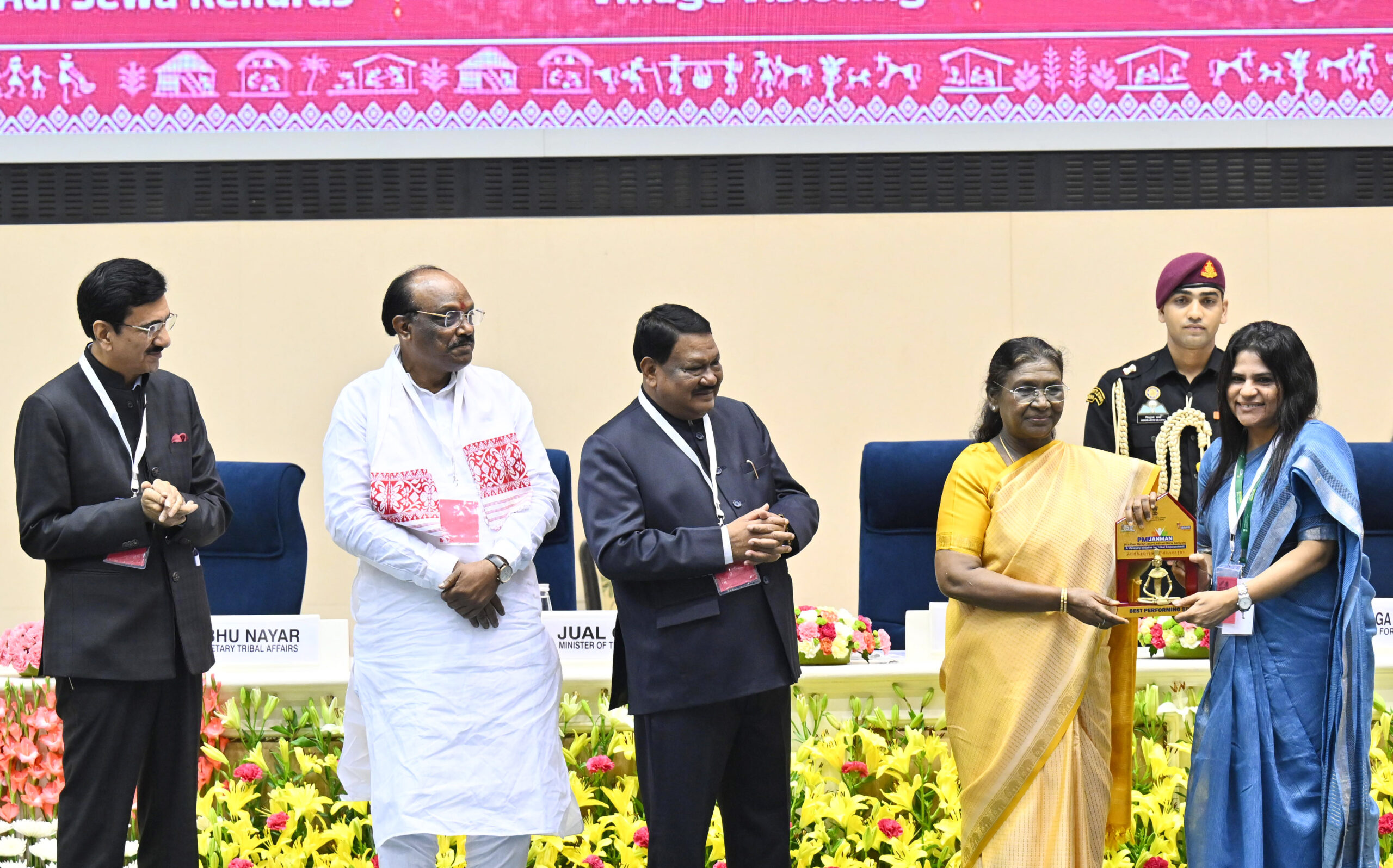 New Delhi, 18th Oct: President Droupadi Murmu on Friday addressed the national conclave on the ‘Adi Karmayogi Abhiyan’ in New Delhi and presented awards to the best-performing states, districts, blocks, and Integrated Tribal Development Agencies.