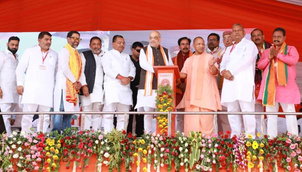 Amit Shah said that under the leadership of Prime Minister Shri Narendra Modi Uttar Pradesh has emerged as a symbol of development. A network of roads and canals has been laid in the state, every farmer is being provided Rs. 6,000 under the Pradhan Mantri Kisan Yojana, gas cylinders have reached 1.76 crore houses, toilets and electricity have reached every house and there is not a single village in the state without electricity.