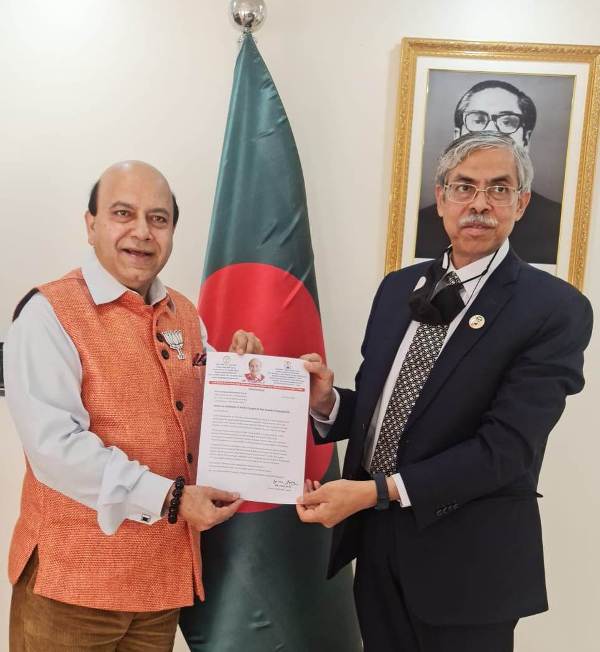New Delhi, 22nd Oct. Dr. Jolly met Bangladesh High Commissioner Mohammad Imran and submitted a Memorandum. It said, “India & Bangladesh are friendly nations combating militancy in the neighborhood. India fought for Bangladesh independence against the Pakistan Army in 1971 war.