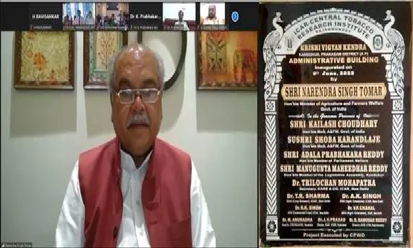 Prakasam, 11th June. Union Minister for Agriculture and Farmers Welfare Narendra Singh Tomar on Friday inaugurated the Administrative Building of Krishi Vigyan Kendra (KVK), Kandukur in Prakasam district of Andhra Pradesh, affiliated with the Central Tobacco Research Institute of the Indian Council of Agricultural Research.