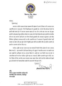 Bhopal, 16th Dec. Former chief minister Shivraj Singh Chouhan has written a letter to Madhya Pradesh High Court Chief Justice Ravi Malimath, seeking forgiveness for two ABVP functionaries who were arrested for using a judge’s car to transport a sick person to a hospital in Gwalior.